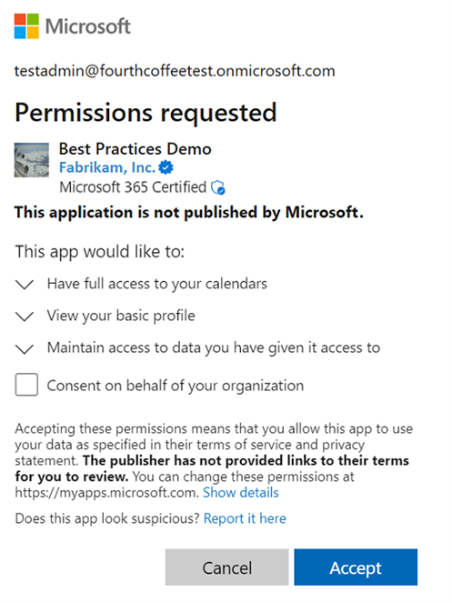 This may not be a big deal when you’re playing Farmville with your personal account but when a corporate user checks that check box to “Consent on behalf of your organization”, that user could literally be giving that application permissions to your entire organization. In fact, this particular method was used during the SolarWinds/Solorigate campaign so we’ve known about it for some time. Yet many people still haven’t put protections in place to prevent it.